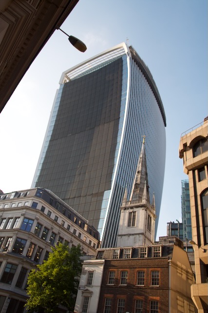 20 Fenchurch Street met beschermende doeken tegen het zonnelens-probleem